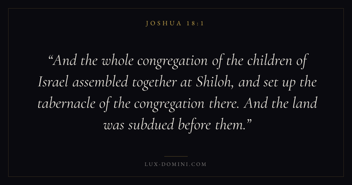 And the whole congregation of the children of Israel assembled together at Shiloh, and set up the tabernacle of the congregation there. And the land was subdued before them.