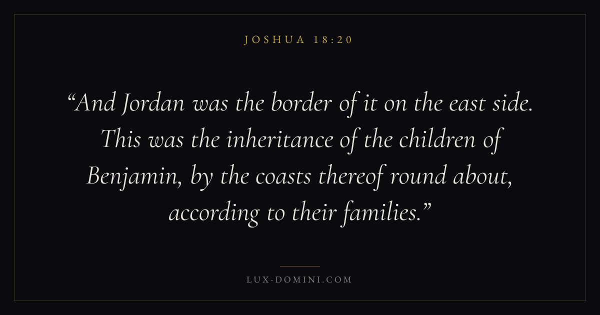 And Jordan was the border of it on the east side. This was the inheritance of the children of Benjamin, by the coasts thereof round about, according to their families.