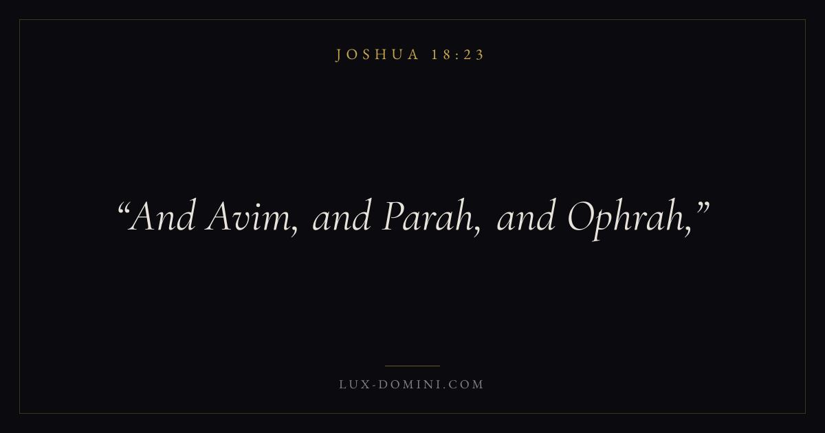 The heifer, a town in Benjamin ( Josh. 18:23 ), supposed to be identical with the ruins called Far’ah, about 6 miles north-east of Jerusalem, in the Wady Far’ah, which is a branch of the Wady Kelt. Modern identification: Khirbet Ein Fara.