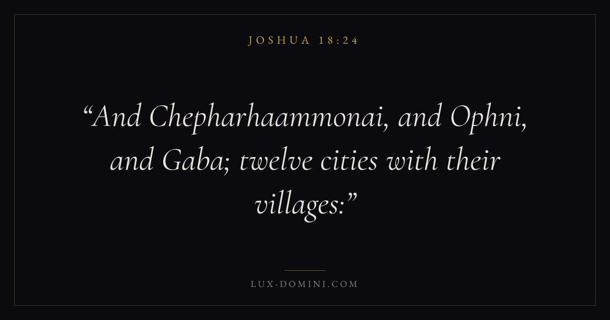 And Chepharhaammonai, and Ophni, and Gaba; twelve cities with their villages: