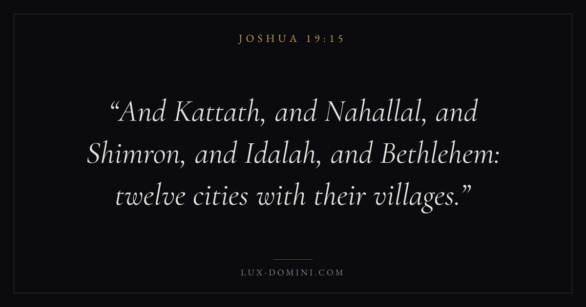 And Kattath, and Nahallal, and Shimron, and Idalah, and Bethlehem: twelve cities with their villages.