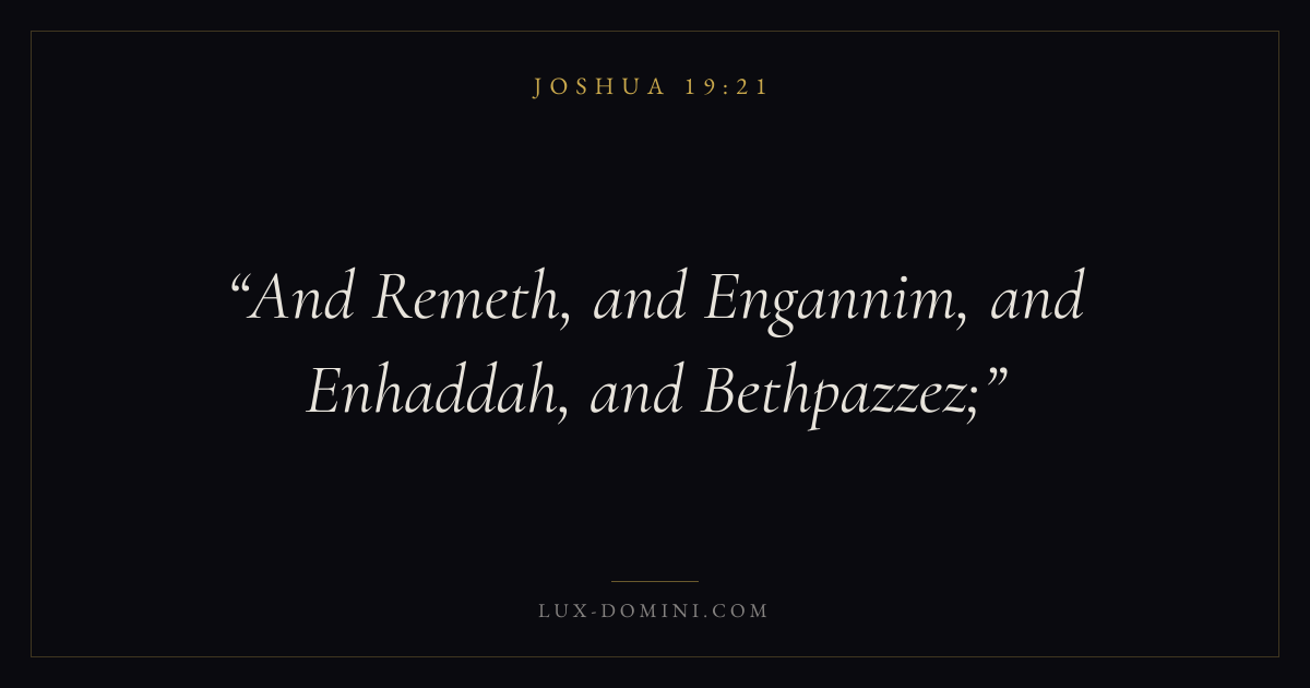 And Remeth, and Engannim, and Enhaddah, and Bethpazzez;