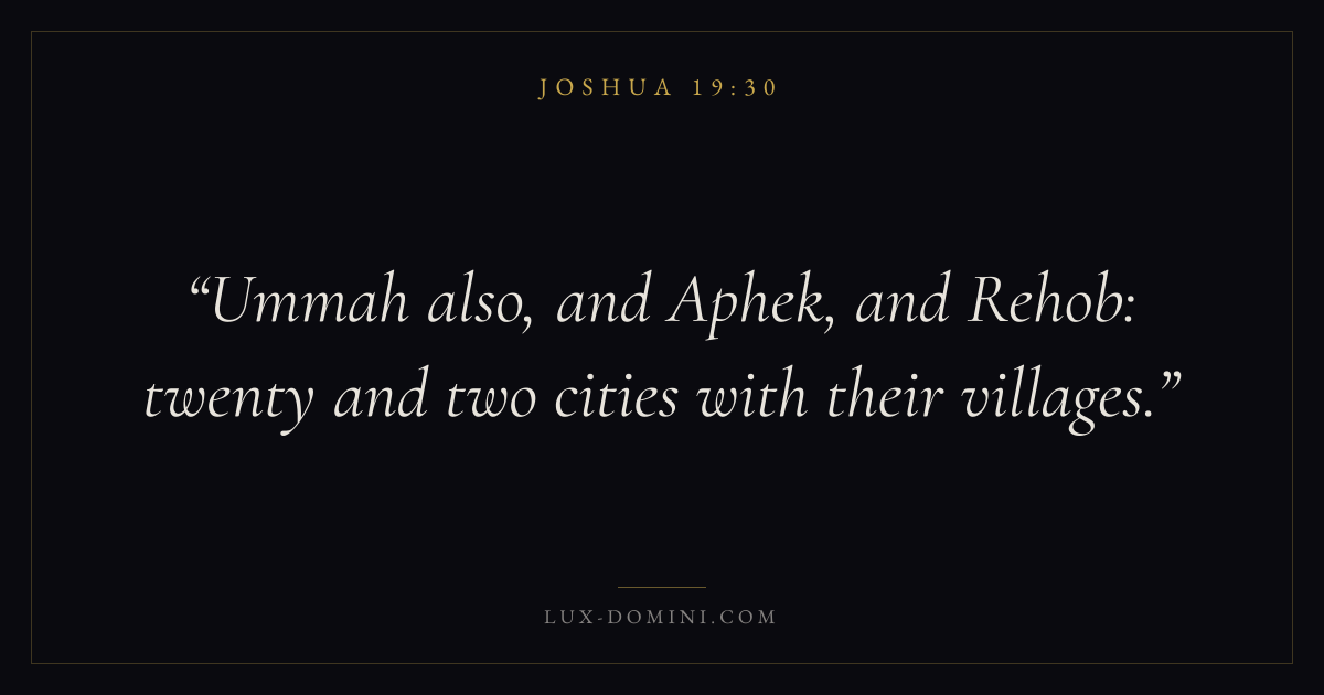 Ummah also, and Aphek, and Rehob: twenty and two cities with their villages.