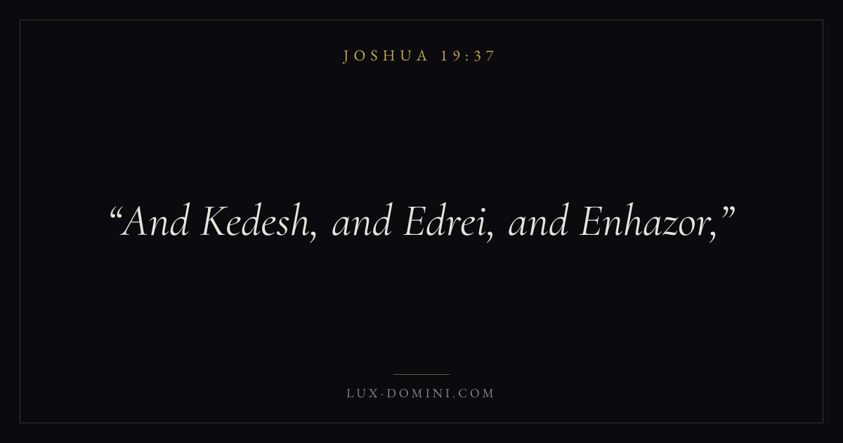 Sanctuary. (1. ) A place in the extreme south of Judah ( Josh. 15:23 ). Probably the same as Kadesh-barnea (q. v. ). (2. ) A city of Issachar ( 1 Chr. 6:72 ). Possibly Tell Abu Kadeis, near Lejjun. Modern identification: Tel Kedesh.