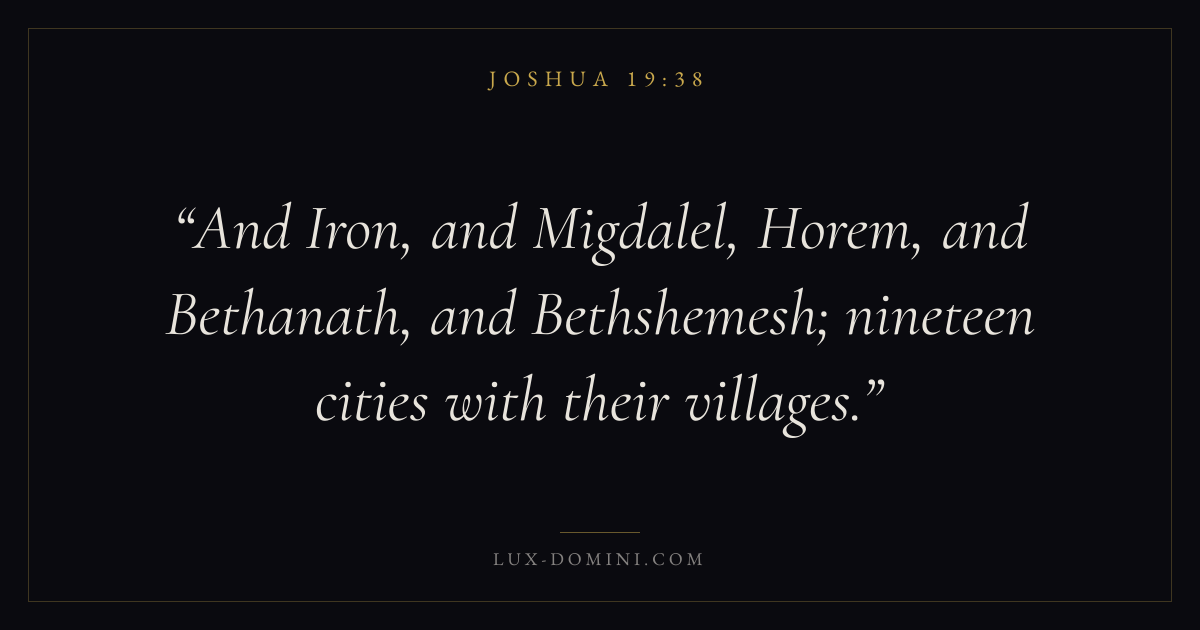 And Iron, and Migdalel, Horem, and Bethanath, and Bethshemesh; nineteen cities with their villages.
