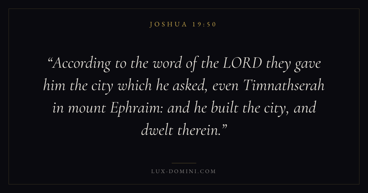 According to the word of the LORD they gave him the city which he asked, even Timnathserah in mount Ephraim: and he built the city, and dwelt therein.
