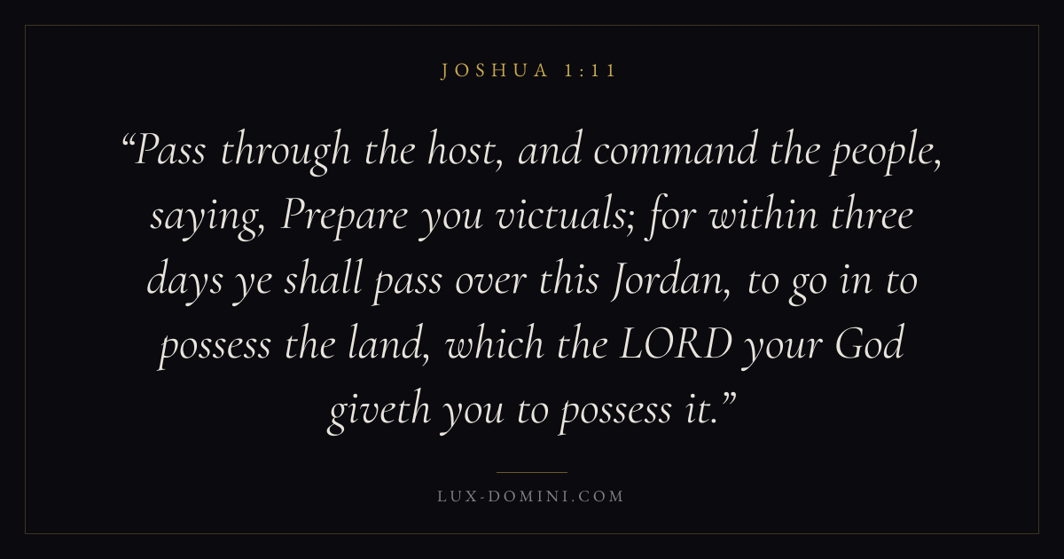Pass through the host, and command the people, saying, Prepare you victuals; for within three days ye shall pass over this Jordan, to go in to possess the land, which the LORD your God giveth you to possess it.
