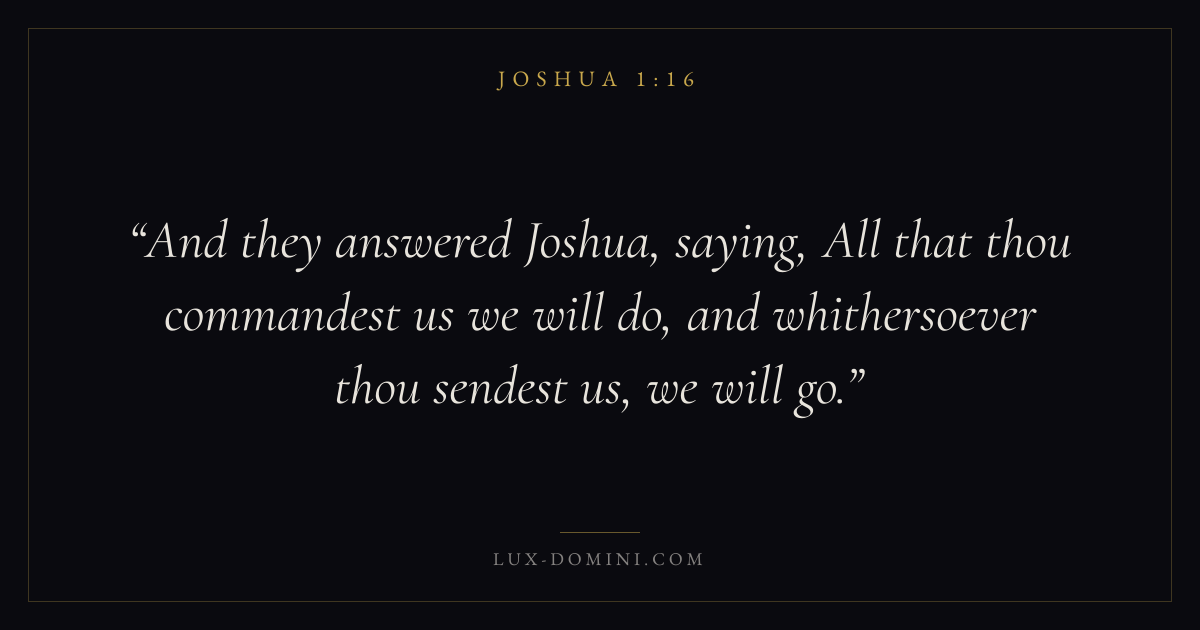 And they answered Joshua, saying, All that thou commandest us we will do, and whithersoever thou sendest us, we will go.