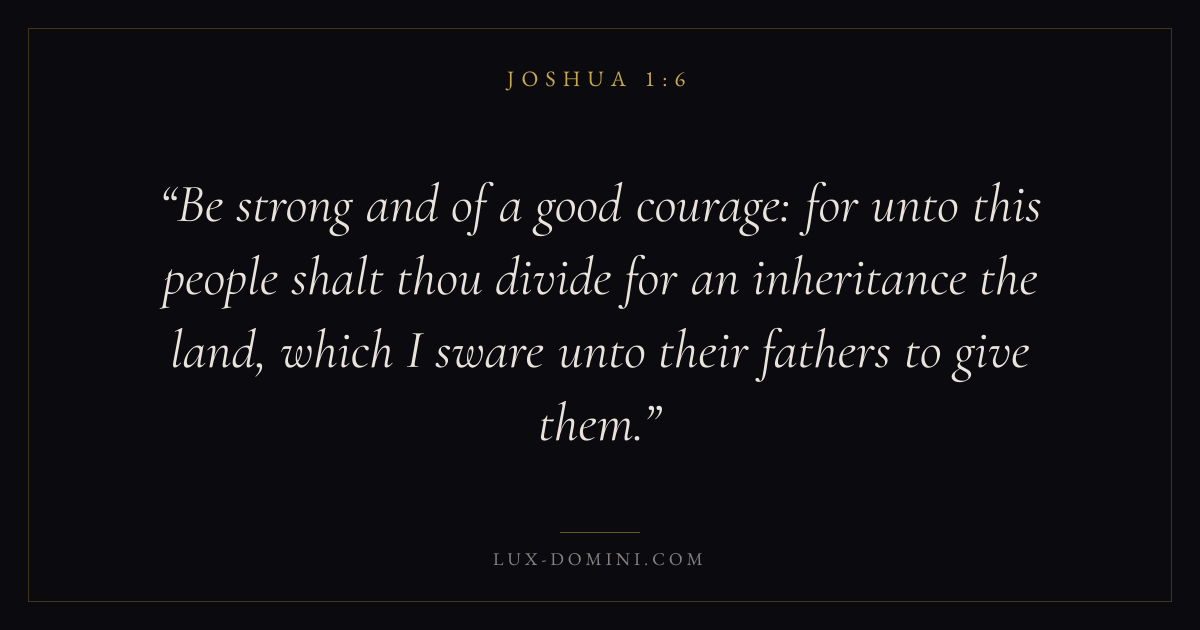 Be strong and of a good courage: for unto this people shalt thou divide for an inheritance the land, which I sware unto their fathers to give them.