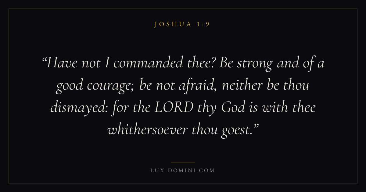 Have not I commanded thee? Be strong and of a good courage; be not afraid, neither be thou dismayed: for the LORD thy God is with thee whithersoever thou goest.