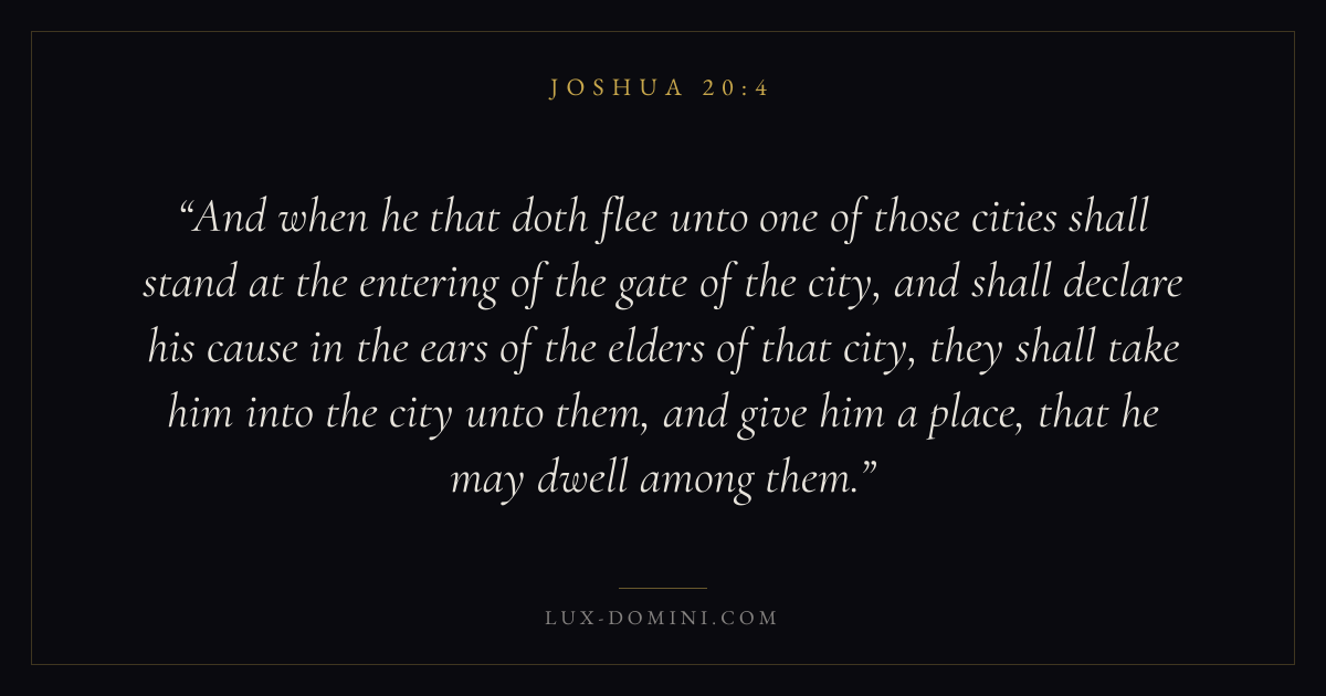 And when he that doth flee unto one of those cities shall stand at the entering of the gate of the city, and shall declare his cause in the ears of the elders of that city, they shall take him into the city unto them, and give him a place, that he may dwell among them.