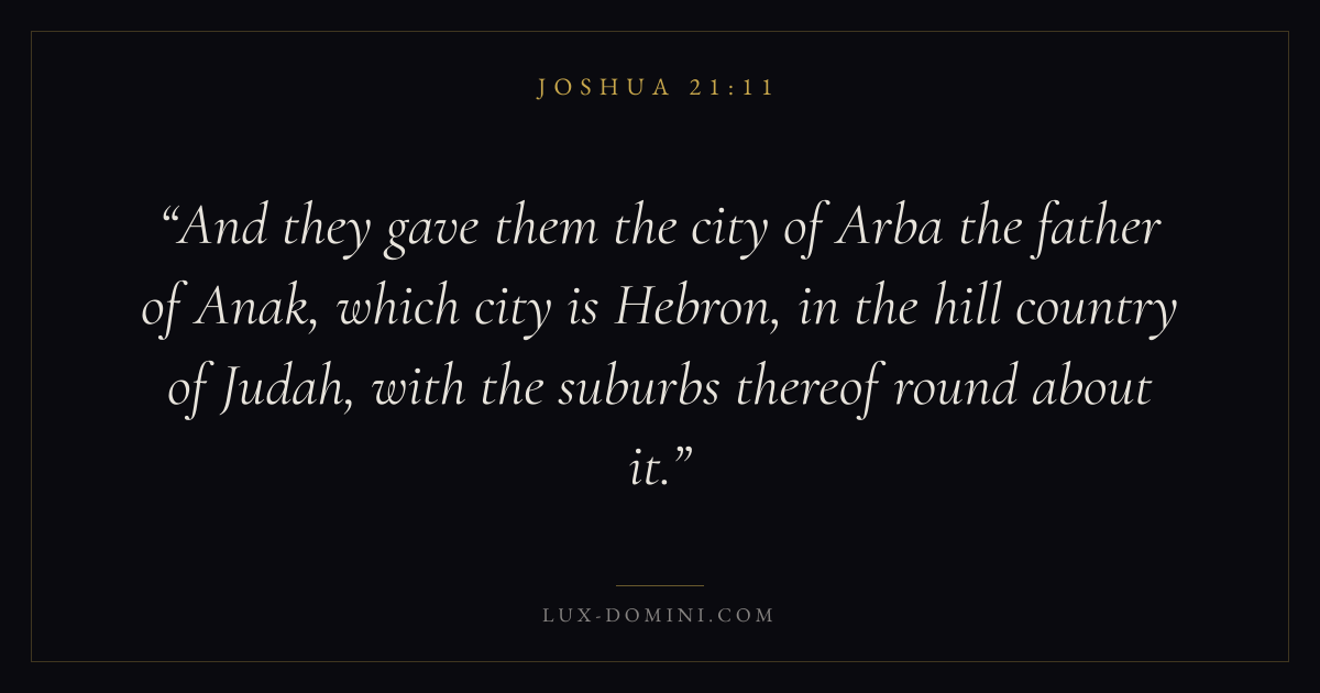 And they gave them the city of Arba the father of Anak, which city is Hebron, in the hill country of Judah, with the suburbs thereof round about it.
