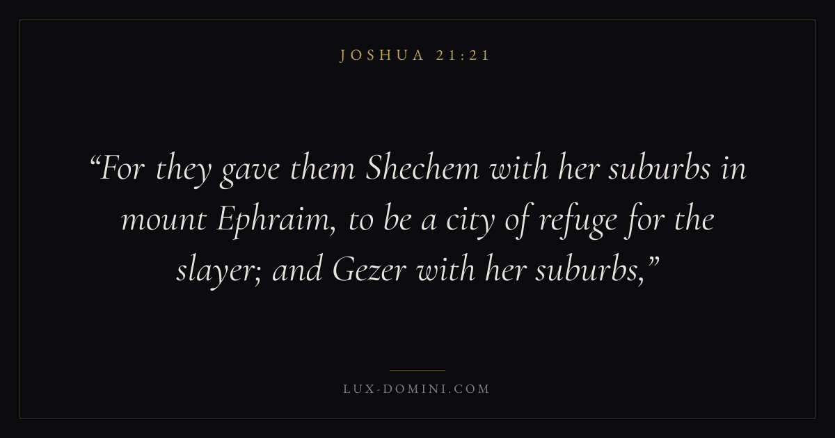 For they gave them Shechem with her suburbs in mount Ephraim, to be a city of refuge for the slayer; and Gezer with her suburbs,