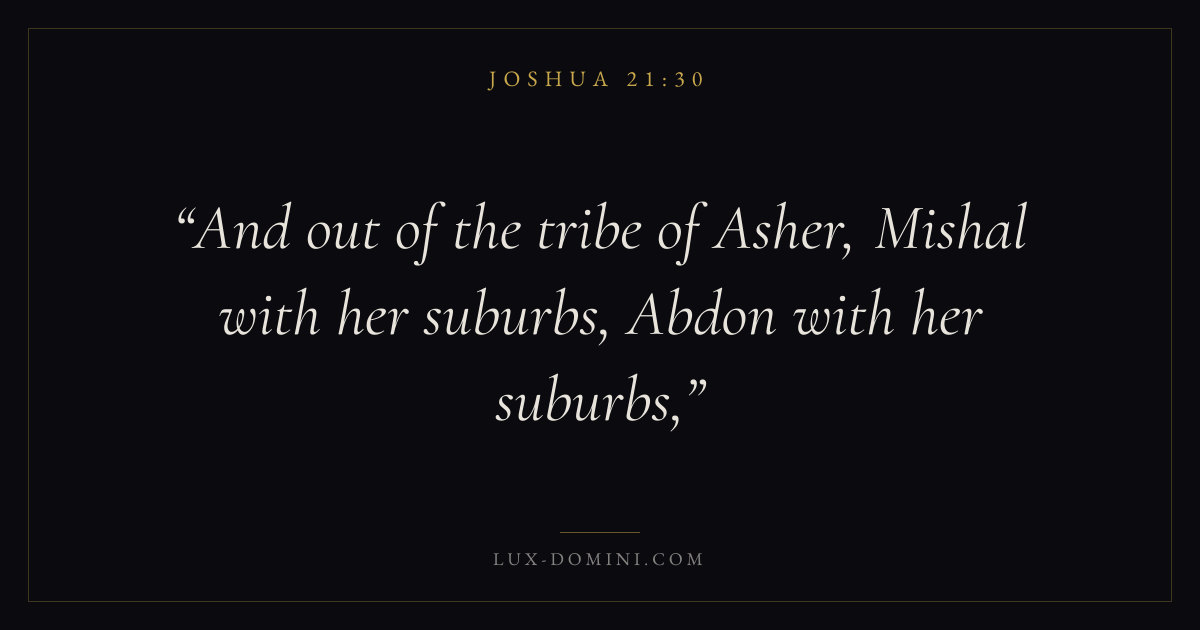 And out of the tribe of Asher, Mishal with her suburbs, Abdon with her suburbs,