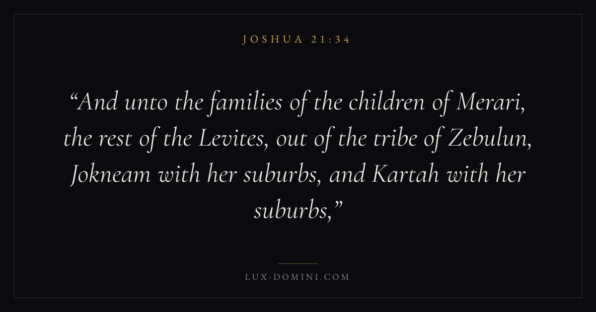 And unto the families of the children of Merari, the rest of the Levites, out of the tribe of Zebulun, Jokneam with her suburbs, and Kartah with her suburbs,