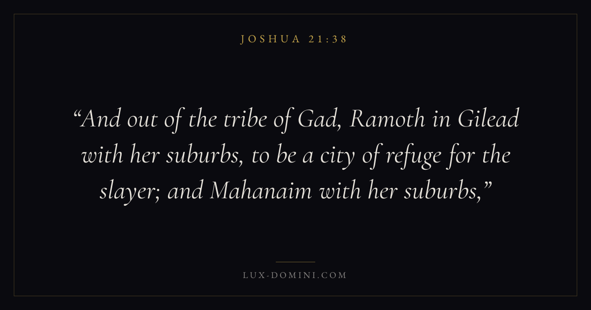 And out of the tribe of Gad, Ramoth in Gilead with her suburbs, to be a city of refuge for the slayer; and Mahanaim with her suburbs,