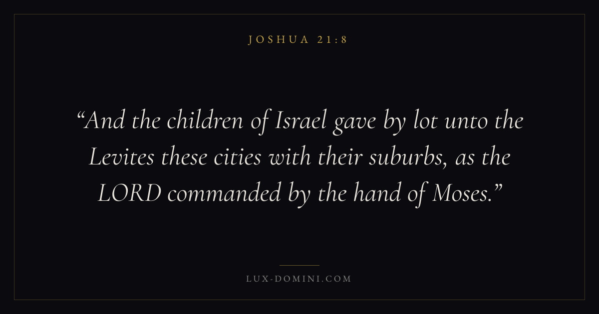 And the children of Israel gave by lot unto the Levites these cities with their suburbs, as the LORD commanded by the hand of Moses.