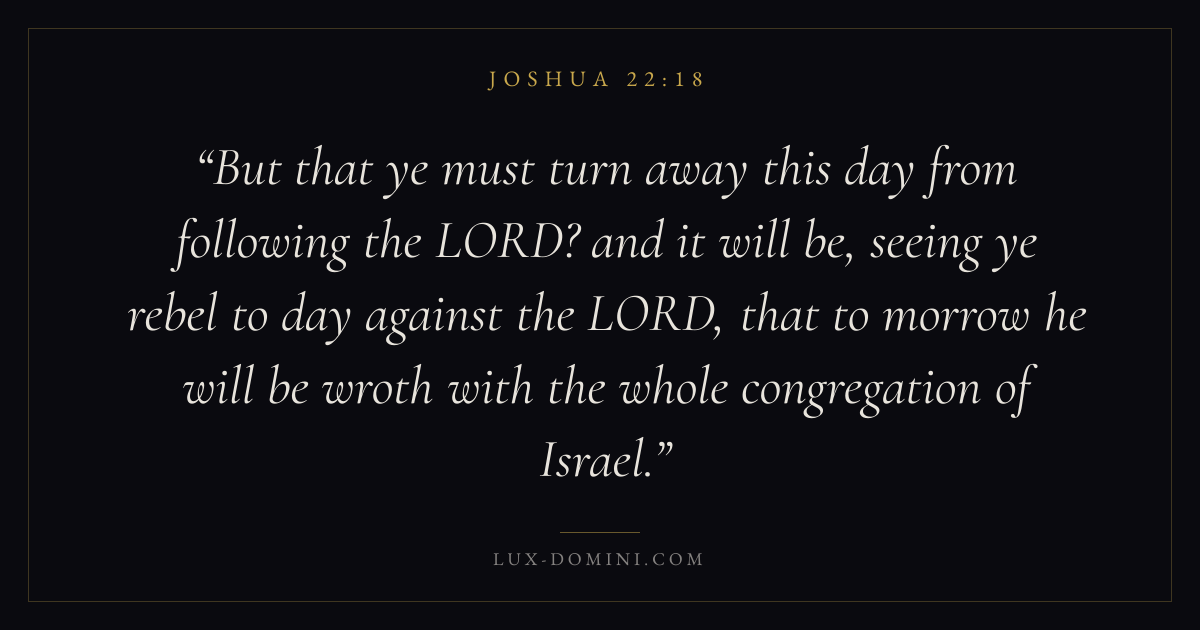 But that ye must turn away this day from following the LORD? and it will be, seeing ye rebel to day against the LORD, that to morrow he will be wroth with the whole congregation of Israel.