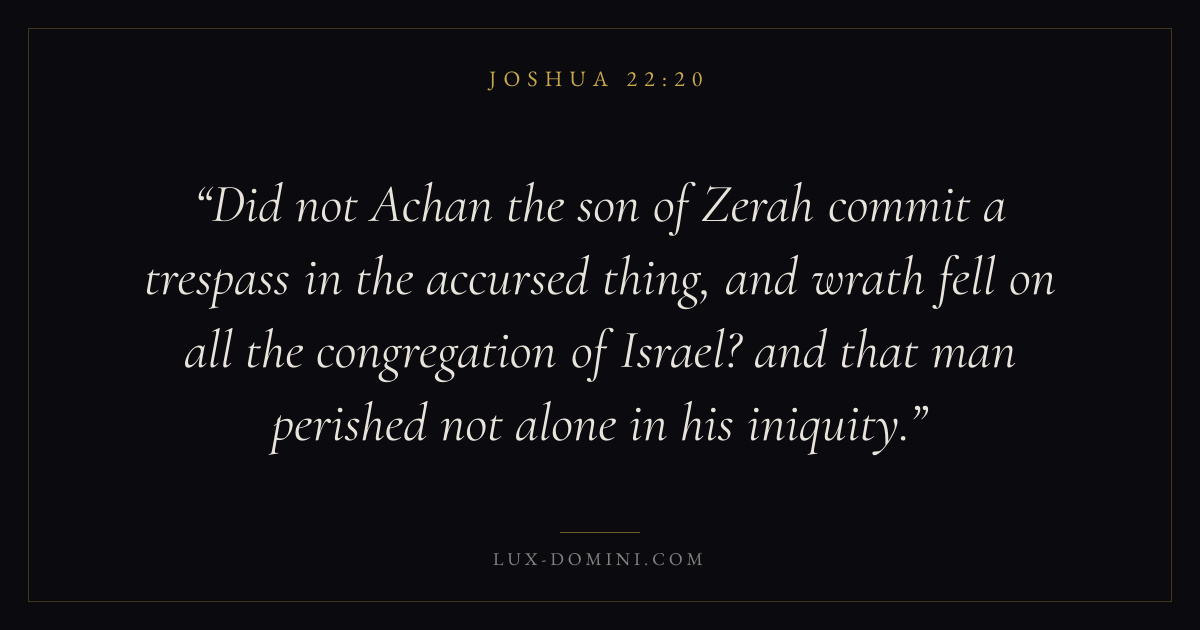 Did not Achan the son of Zerah commit a trespass in the accursed thing, and wrath fell on all the congregation of Israel? and that man perished not alone in his iniquity.