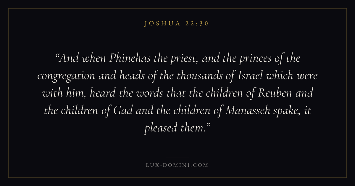And when Phinehas the priest, and the princes of the congregation and heads of the thousands of Israel which were with him, heard the words that the children of Reuben and the children of Gad and the children of Manasseh spake, it pleased them.