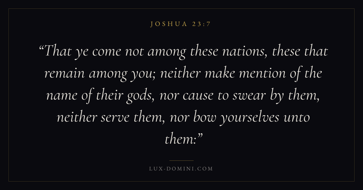 That ye come not among these nations, these that remain among you; neither make mention of the name of their gods, nor cause to swear by them, neither serve them, nor bow yourselves unto them: