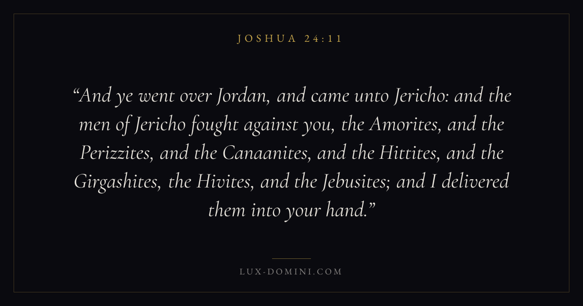 And ye went over Jordan, and came unto Jericho: and the men of Jericho fought against you, the Amorites, and the Perizzites, and the Canaanites, and the Hittites, and the Girgashites, the Hivites, and the Jebusites; and I delivered them into your hand.