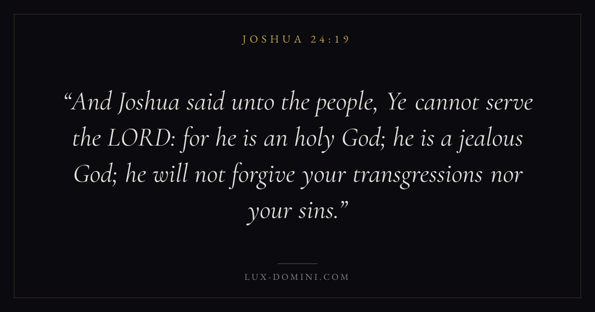 And Joshua said unto the people, Ye cannot serve the LORD: for he is an holy God; he is a jealous God; he will not forgive your transgressions nor your sins.