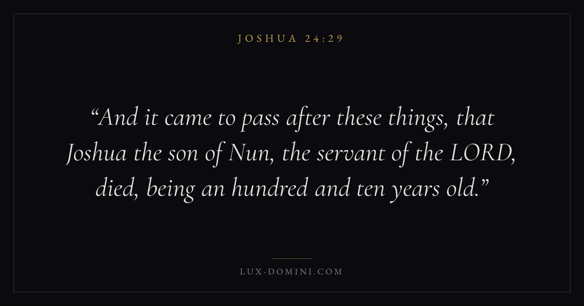 And it came to pass after these things, that Joshua the son of Nun, the servant of the LORD, died, being an hundred and ten years old.