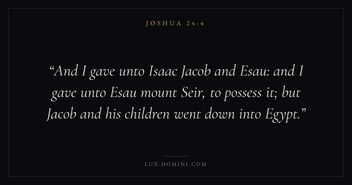 And I gave unto Isaac Jacob and Esau: and I gave unto Esau mount Seir, to possess it; but Jacob and his children went down into Egypt.