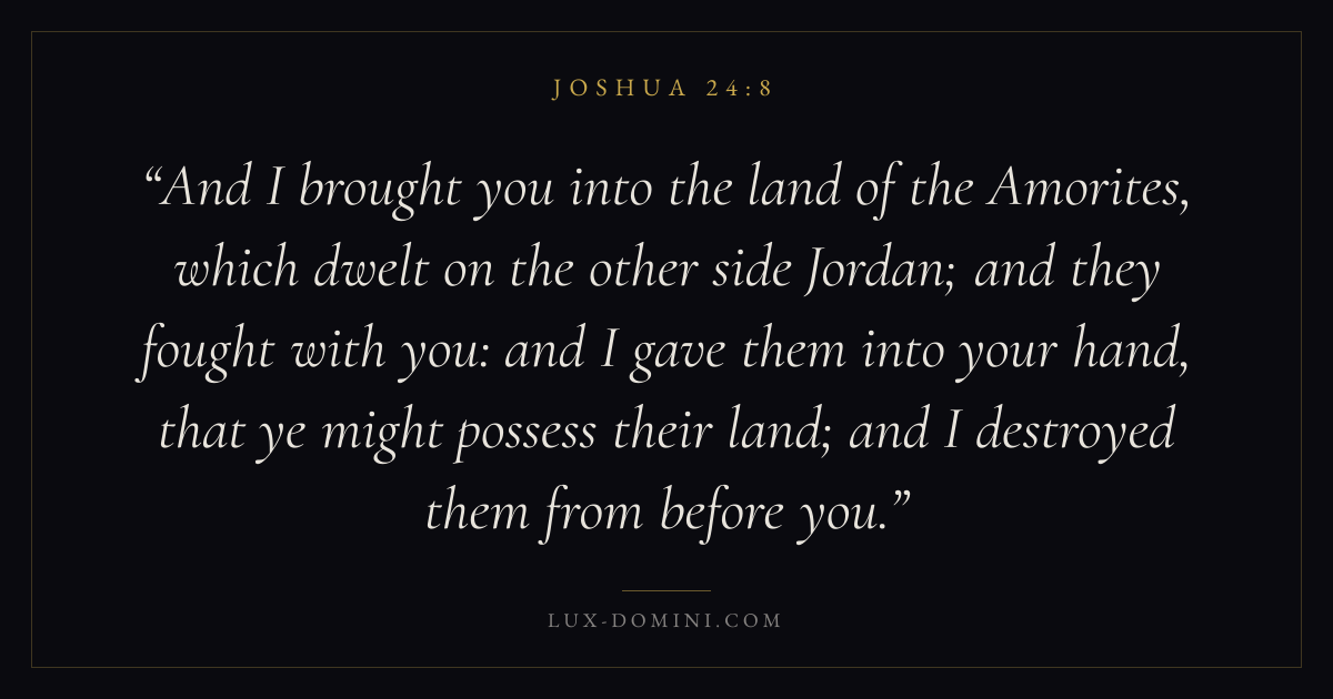 And I brought you into the land of the Amorites, which dwelt on the other side Jordan; and they fought with you: and I gave them into your hand, that ye might possess their land; and I destroyed them from before you.