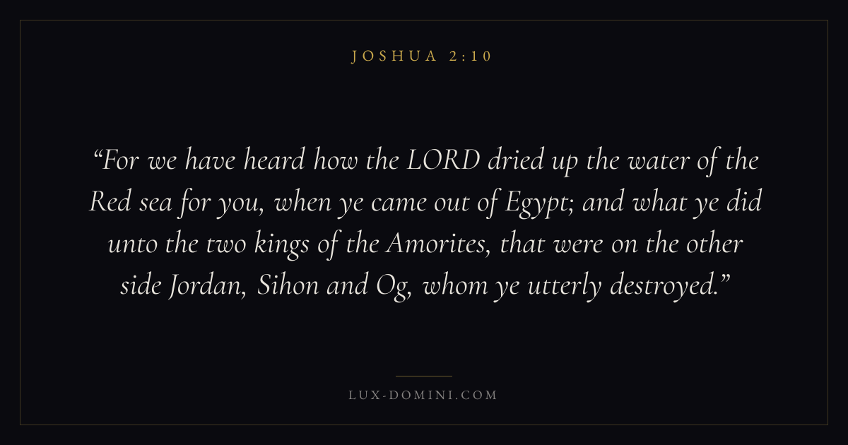 For we have heard how the LORD dried up the water of the Red sea for you, when ye came out of Egypt; and what ye did unto the two kings of the Amorites, that were on the other side Jordan, Sihon and Og, whom ye utterly destroyed.