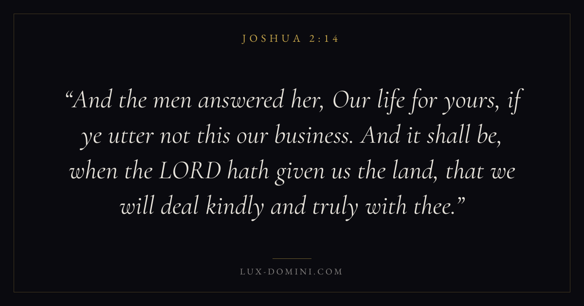 And the men answered her, Our life for yours, if ye utter not this our business. And it shall be, when the LORD hath given us the land, that we will deal kindly and truly with thee.