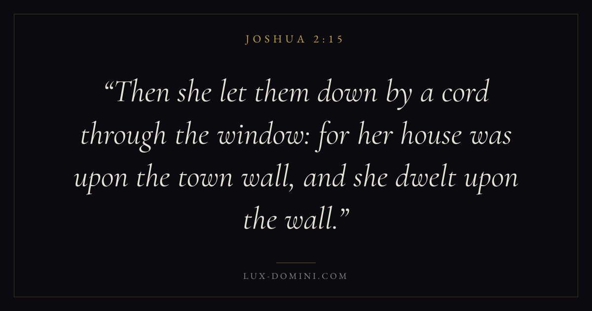 Then she let them down by a cord through the window: for her house was upon the town wall, and she dwelt upon the wall.