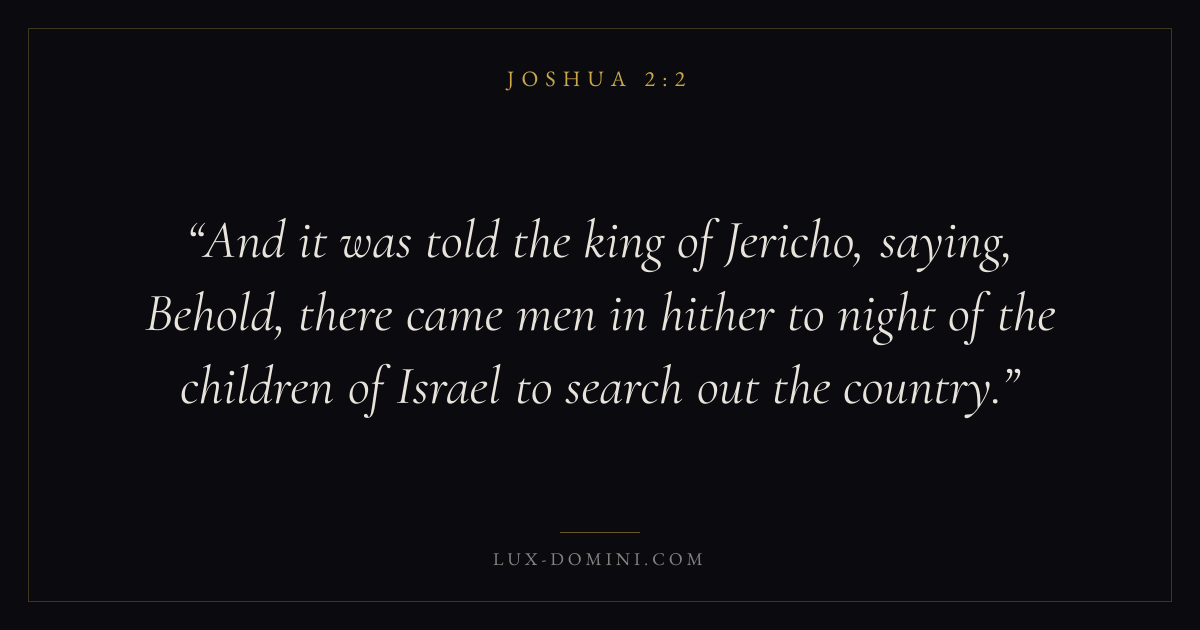 And it was told the king of Jericho, saying, Behold, there came men in hither to night of the children of Israel to search out the country.