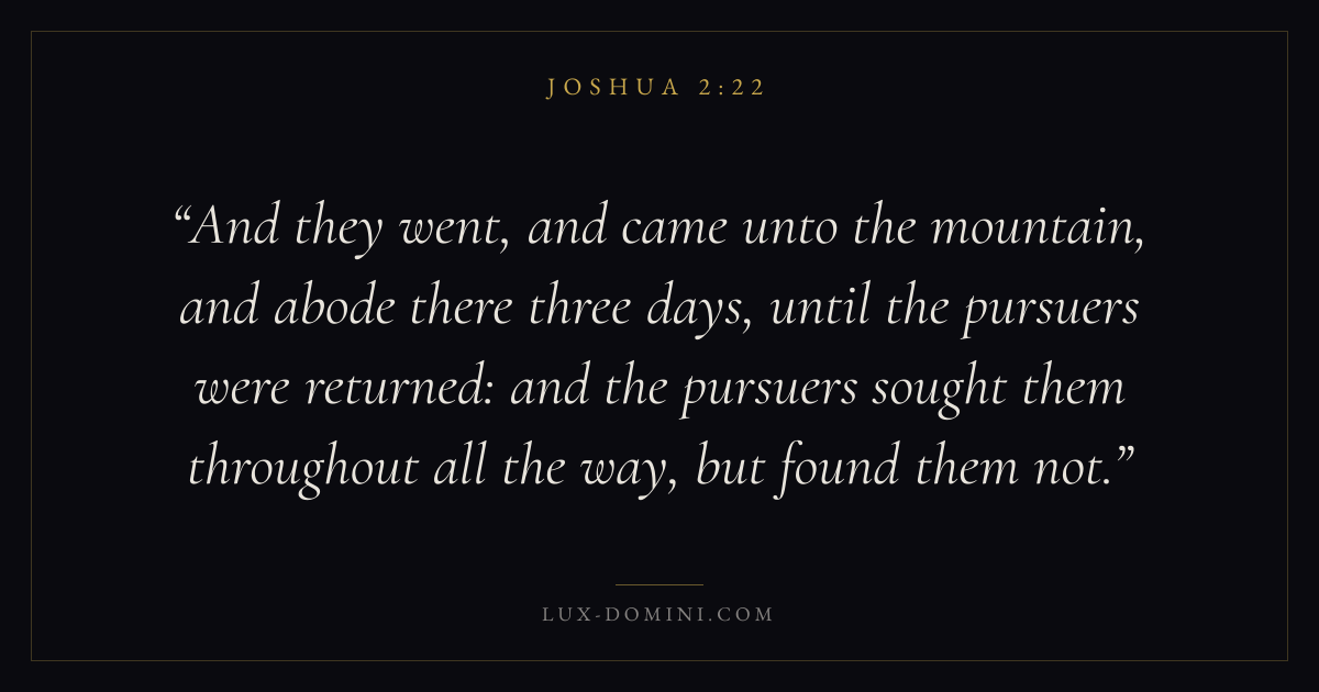 And they went, and came unto the mountain, and abode there three days, until the pursuers were returned: and the pursuers sought them throughout all the way, but found them not.