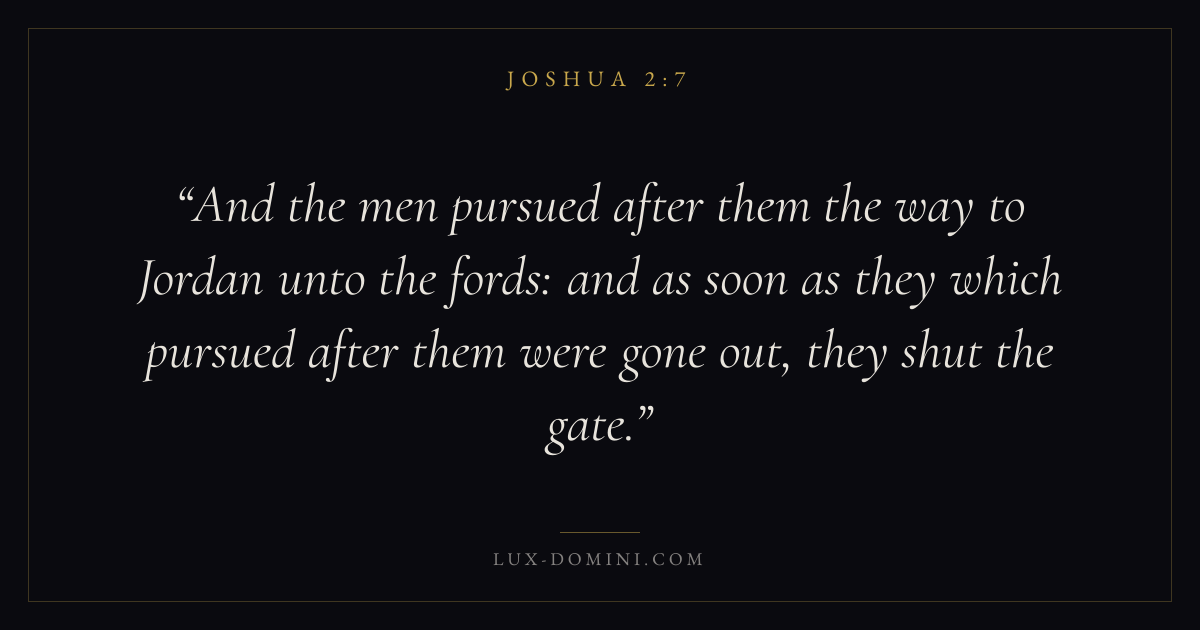 And the men pursued after them the way to Jordan unto the fords: and as soon as they which pursued after them were gone out, they shut the gate.