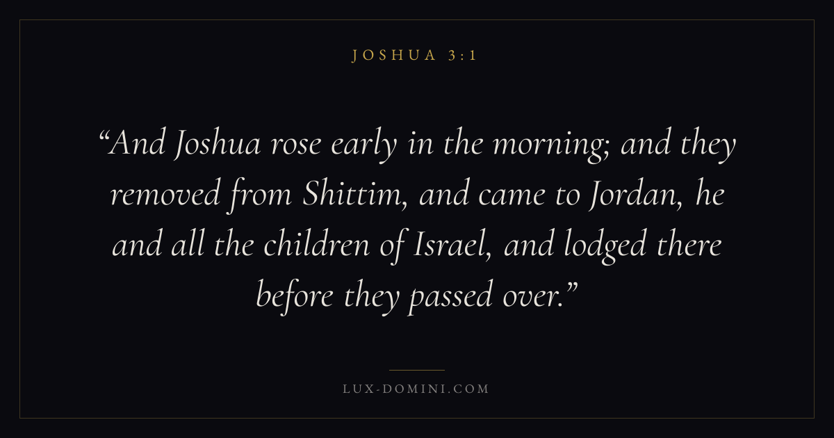 And Joshua rose early in the morning; and they removed from Shittim, and came to Jordan, he and all the children of Israel, and lodged there before they passed over.