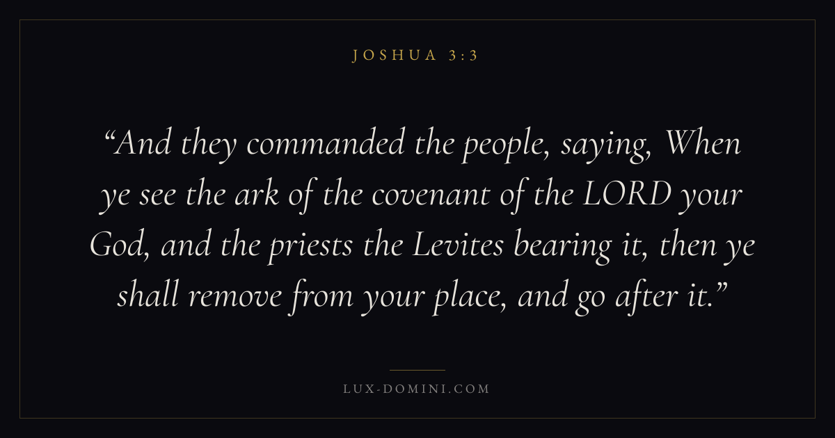 And they commanded the people, saying, When ye see the ark of the covenant of the LORD your God, and the priests the Levites bearing it, then ye shall remove from your place, and go after it.