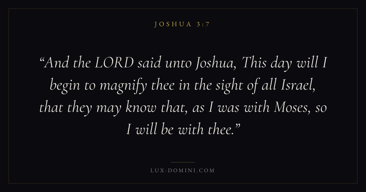 And the LORD said unto Joshua, This day will I begin to magnify thee in the sight of all Israel, that they may know that, as I was with Moses, so I will be with thee.