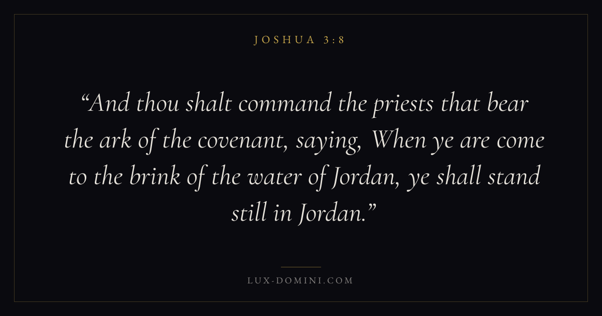 And thou shalt command the priests that bear the ark of the covenant, saying, When ye are come to the brink of the water of Jordan, ye shall stand still in Jordan.