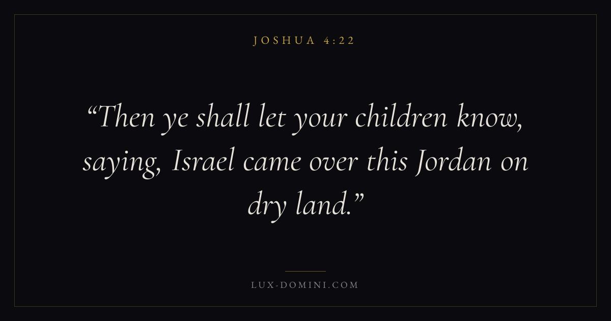 Then ye shall let your children know, saying, Israel came over this Jordan on dry land.