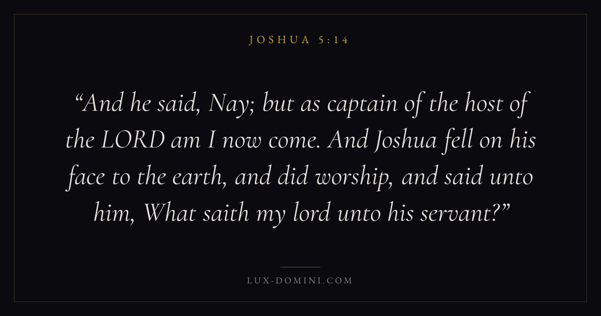 And he said, Nay; but as captain of the host of the LORD am I now come. And Joshua fell on his face to the earth, and did worship, and said unto him, What saith my lord unto his servant?