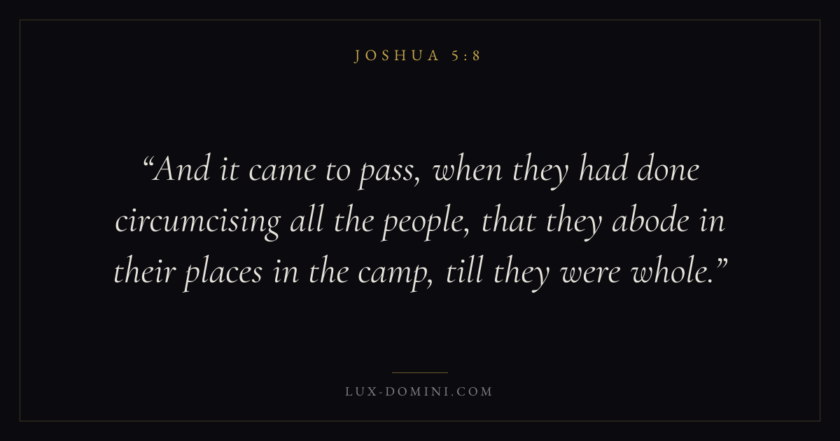 And it came to pass, when they had done circumcising all the people, that they abode in their places in the camp, till they were whole.