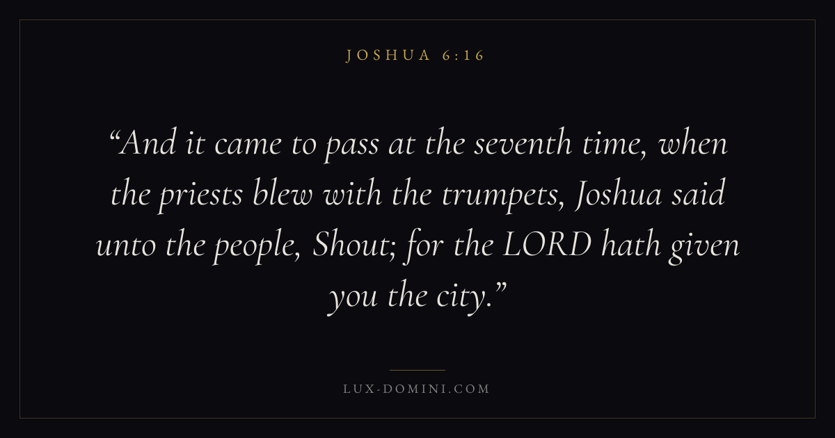 And it came to pass at the seventh time, when the priests blew with the trumpets, Joshua said unto the people, Shout; for the LORD hath given you the city.