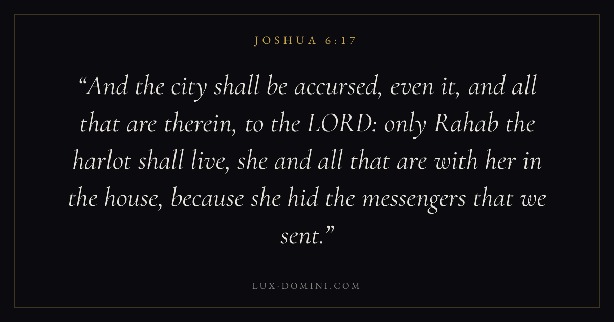 And the city shall be accursed, even it, and all that are therein, to the LORD: only Rahab the harlot shall live, she and all that are with her in the house, because she hid the messengers that we sent.