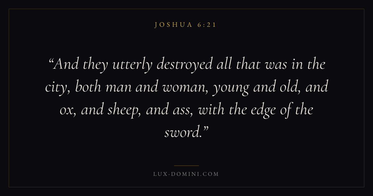 And they utterly destroyed all that was in the city, both man and woman, young and old, and ox, and sheep, and ass, with the edge of the sword.