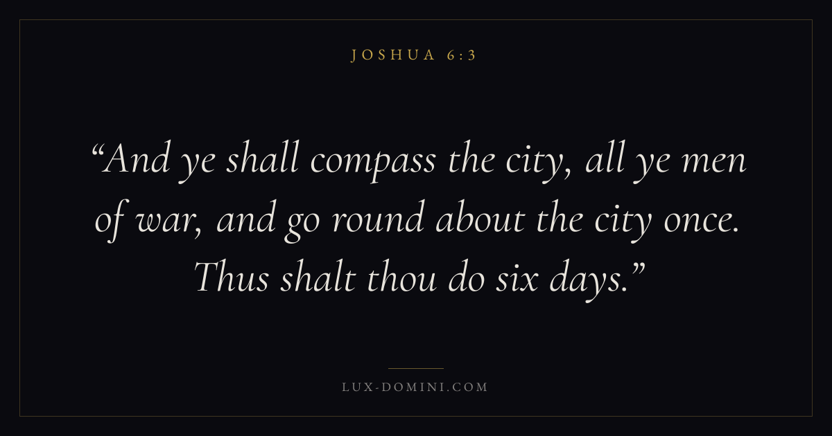And ye shall compass the city, all ye men of war, and go round about the city once. Thus shalt thou do six days.