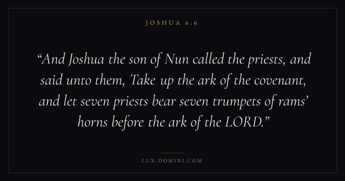And Joshua the son of Nun called the priests, and said unto them, Take up the ark of the covenant, and let seven priests bear seven trumpets of rams’ horns before the ark of the LORD.