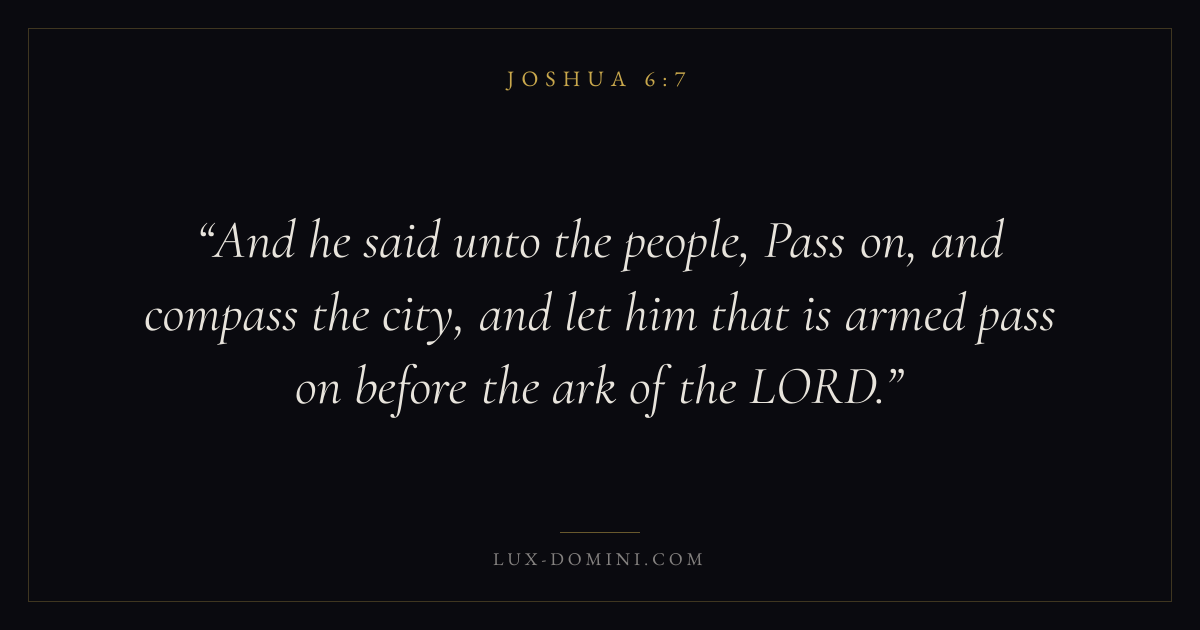 And he said unto the people, Pass on, and compass the city, and let him that is armed pass on before the ark of the LORD.