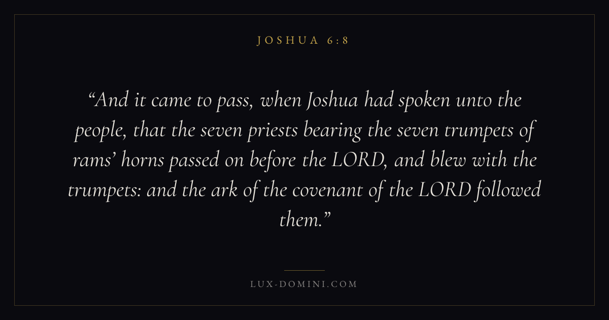 And it came to pass, when Joshua had spoken unto the people, that the seven priests bearing the seven trumpets of rams’ horns passed on before the LORD, and blew with the trumpets: and the ark of the covenant of the LORD followed them.
